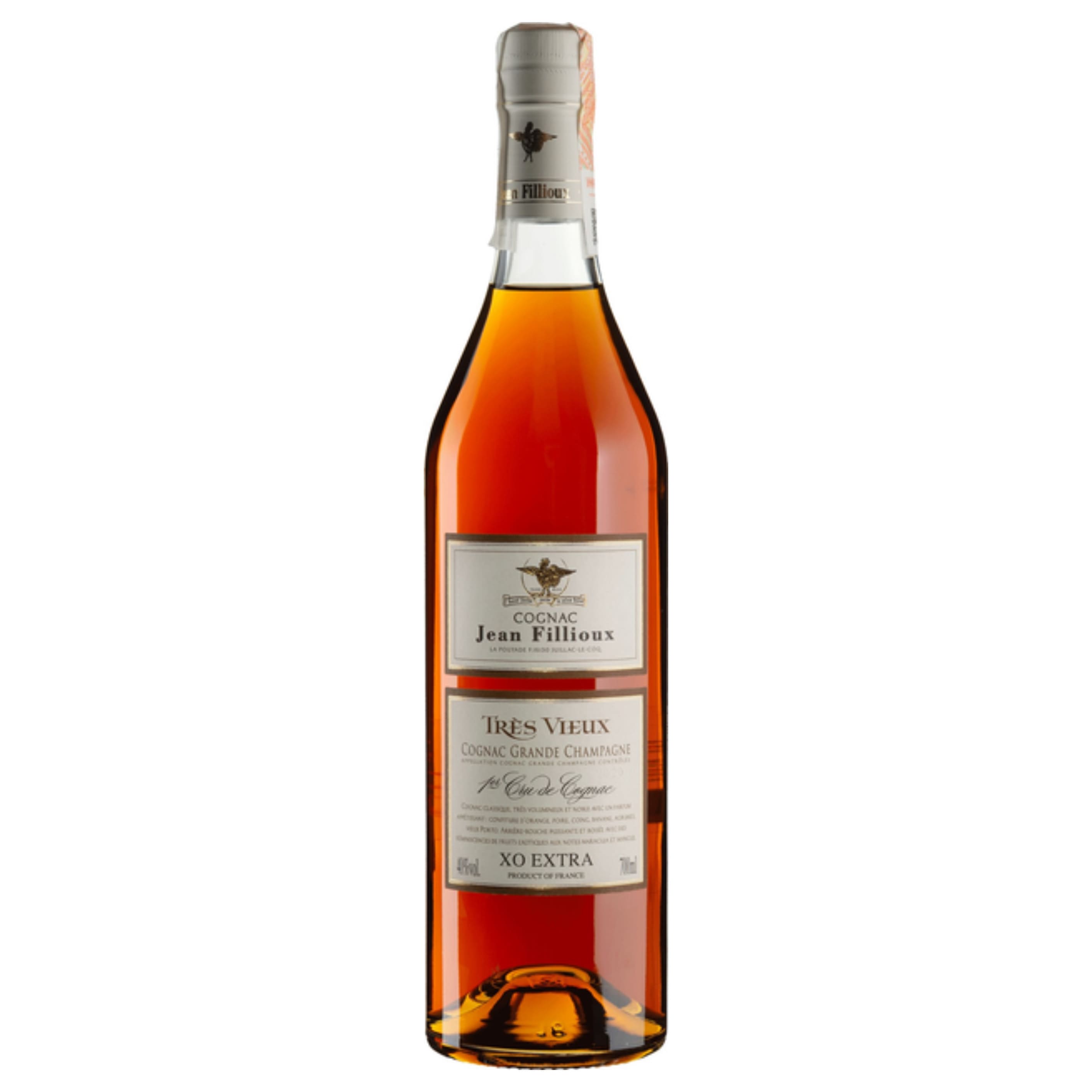 Jean Fillioux Tres Vieux 27-річної витримки — старий коньяк бурштинового кольору. Дуже повний, благородний коньяк класичного стилю з апетитним ароматом апельсинового джему, груші, айви, банана, цитрусових, сандалового дерева та старого портвейну. Потужний посмак із підтекстом тропічних плодів.